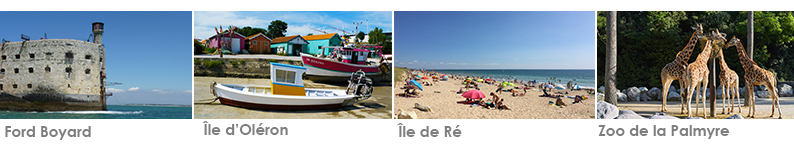 L’île d’Oléron, de Ré, d’Aix et l’île Madame n’attendent que vous ! De nombreuses visites sont à faire sur ses îles, vous ne pouvez pas vous ennuyer ! Que vous souhaitiez passer votre après-midi à bronzer ou à vous balader, vous avez le choix grâce aux différentes plages et sentiers.