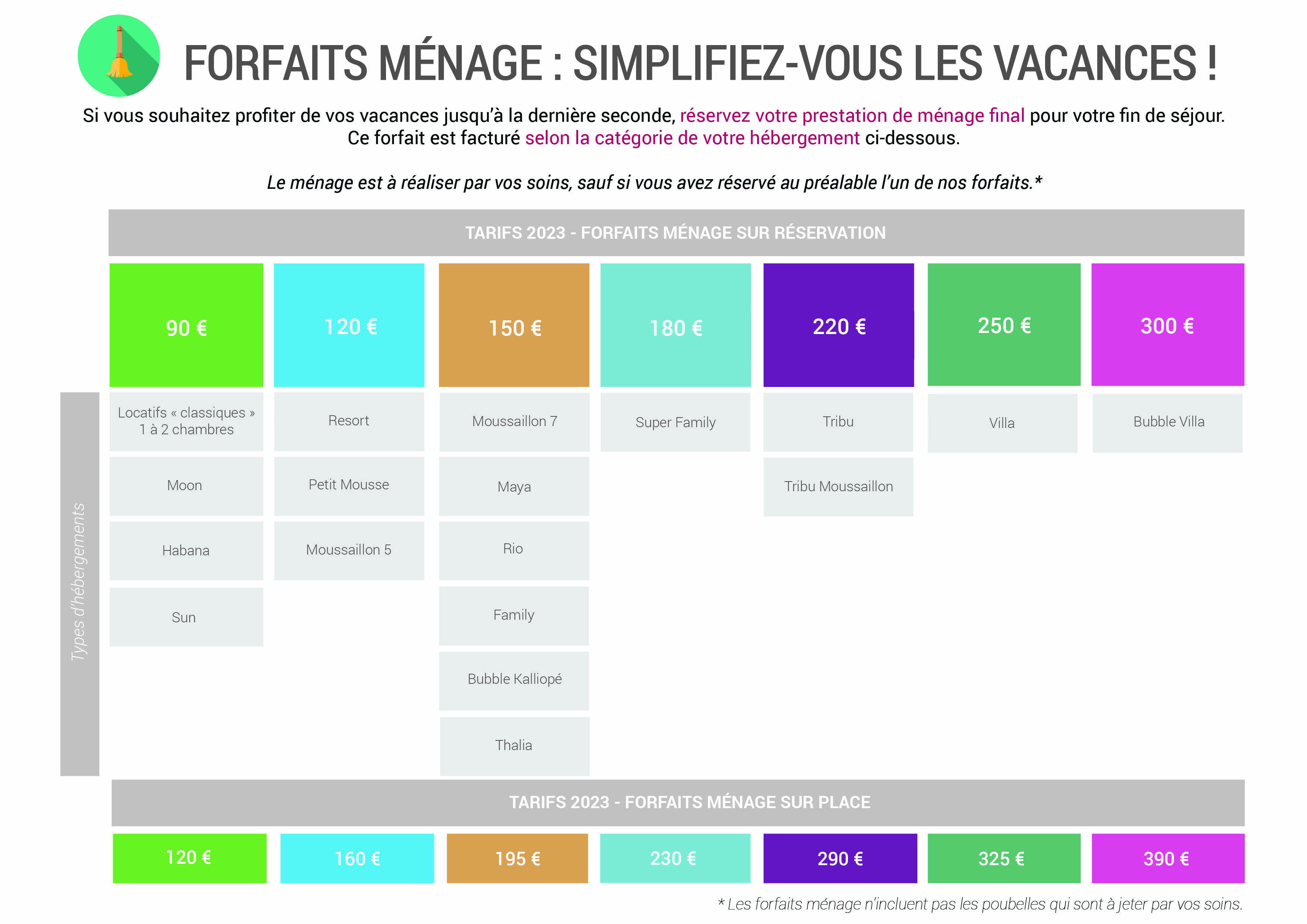 Vous pouvez réserver votre forfait ménage lors de votre réservation sur notre site internet www.vagues-oceanes.com ou par téléphone au 02.51.28.10.20.