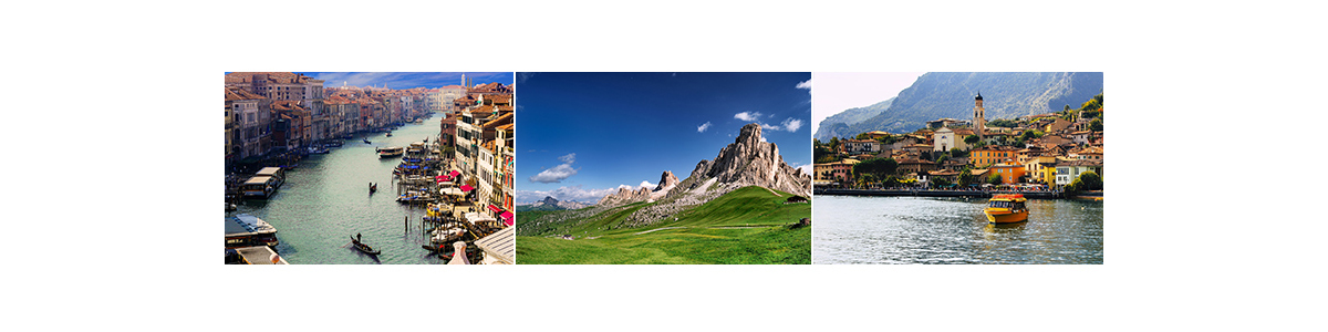 En sortant des villes vénitiennes vous allez pouvoir profiter des diversités des paysages qui s’offrent à vous grâce à la situation entre mer et montagne de la région. Pour les plages allez au Sud de la Vénétie, au bord de la mer adriatique. Trouvez au Nord-Ouest de Vérone le plus grand lac d’Italie : le Lac de Garde. Enfin ne passez pas à côté de la chaîne montueuse des Alpes orientales : Les Dolomites, patrimoine mondial de l’UNESCO.